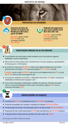 A proposta, enviada em março deste ano pelo governo, estabelece que a isenção – que deve custar R$ 25,8 bilhões por ano – será compensada taxando mais quem ganha acima de R$ 600 mil por ano. Segundo o Ministério da Fazenda, a medida atingirá 0,13% dos contribuintes, que hoje pagam, em média, apenas 2,54% de Imposto de Renda.