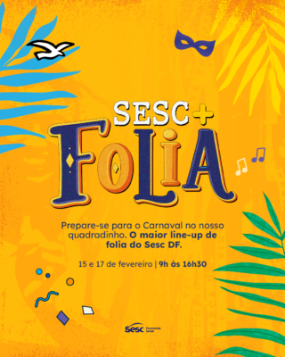 O Sesc Folia 2026 reforça o compromisso do Sesc-DF em promover cultura, lazer e convivência social, oferecendo um Carnaval seguro, acessível e acolhedor para famílias e amigos celebrarem juntos.