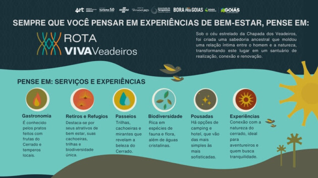 Turísticos incrementar a oferta turística da Chapada dos Veadeiros, valorizando suas características mais singulares e que a diferenciam no mercado turístico, unindo a imagem já consolidada de destino de ecoturismo e turismo de aventura à oferta qualificada de experiências transformadoras de bem-estar para os turistas.”, acrescenta.