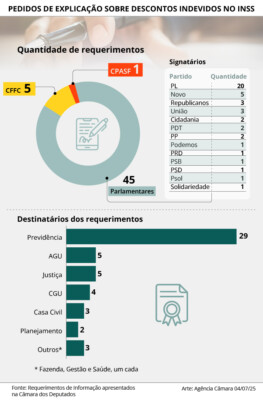 Deputados e deputadas cobram uma série de explicações do governo sobre os descontos indevidos nas aposentadorias e pensões pagas pelo Instituto Nacional do Seguro Social (INSS). Eles se anteciparam à instalação de uma comissão mista parlamentar de inquérito (CPMI) com objetivo de investigar eventuais fraudes.