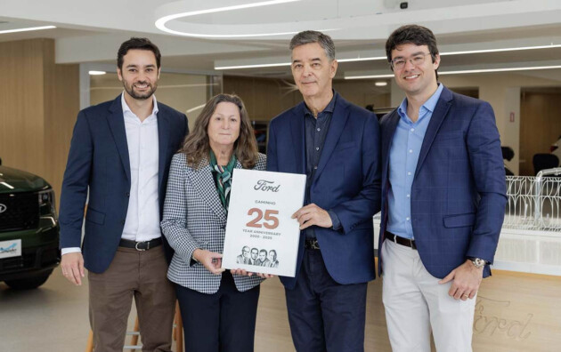 Elena Ford, líder global da área de Dealer Engagement da Ford, visitou o Brasil para revisar o plano de negócios na região e participar de encontros com lideranças da rede de concessionárias. Ela realizou também uma visita à Ford Caminho em Campinas, a primeira loja a adotar o Signature 2.0 no continente, ocasião em que entregou uma placa comemorativa aos 25 anos do Grupo Caminho.
