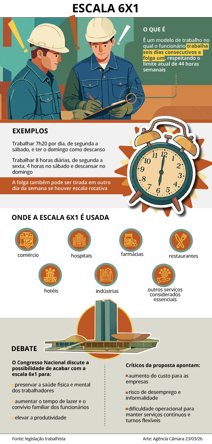 A Comissão de Constituição e Justiça e de Cidadania (CCJ) da Câmara dos Deputados discute, nesta terça-feira (7), propostas que tratam do fim da escala 6×1 (seis dias de trabalho e um de descanso por semana) e da redução da jornada de trabalho no Brasil com confederações setoriais.