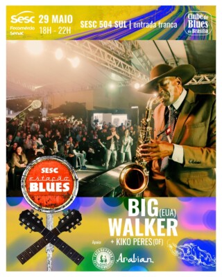 Grande nome do blues internacional, o americano Big Walker vai estar em Brasília para uma superapresentação gratuita nesta quinta-feira, dia 29. Ele vai ser a atração principal da segunda edição de 2025 do Sesc Estação Blues, que terá início às 18 horas, na unidade Sesc Alberto Vilardo, na 504 Sul.