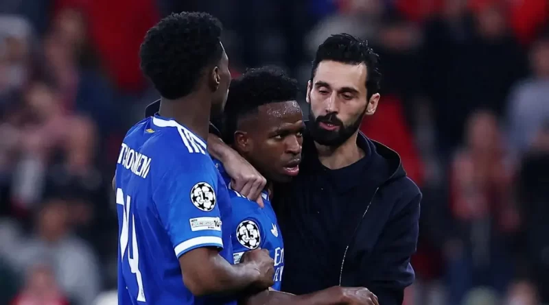Os jogadores do time português foram tirar satisfações com Vini Jr, que recebeu cartão amarelo do árbitro François Letexier. Quando a confusão parecia encerrada, o brasileiro se dirigiu ao juiz reclamando que foi chamado de “mono”, termo em espanhol para macaco. Ele tinha acabado de discutir com Gianluca Prestianni, do Benfica. As imagens da transmissão de TV mostraram que, em certo momento, o atacante argentino colocou a camisa em direção à boca.